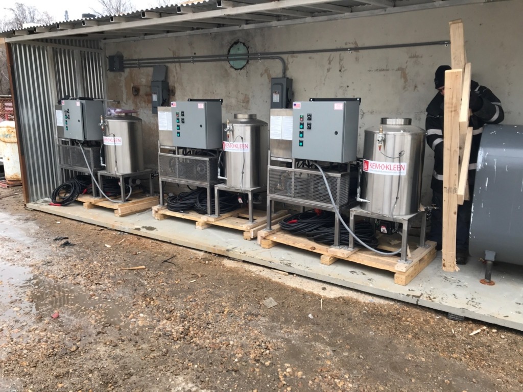 The units can be stored wherever is most convenient for your setup, whether that’s inside your facility or outside, as shown in the photo. No matter where you store your own units, you can be assured that it won’t affect their performance or safety – our units are built to withstand anything you throw at them. You can even pair yours up with additional Kem-O-Kleen units to boost your industrial cleaning capacity and broaden your units’ capabilities.